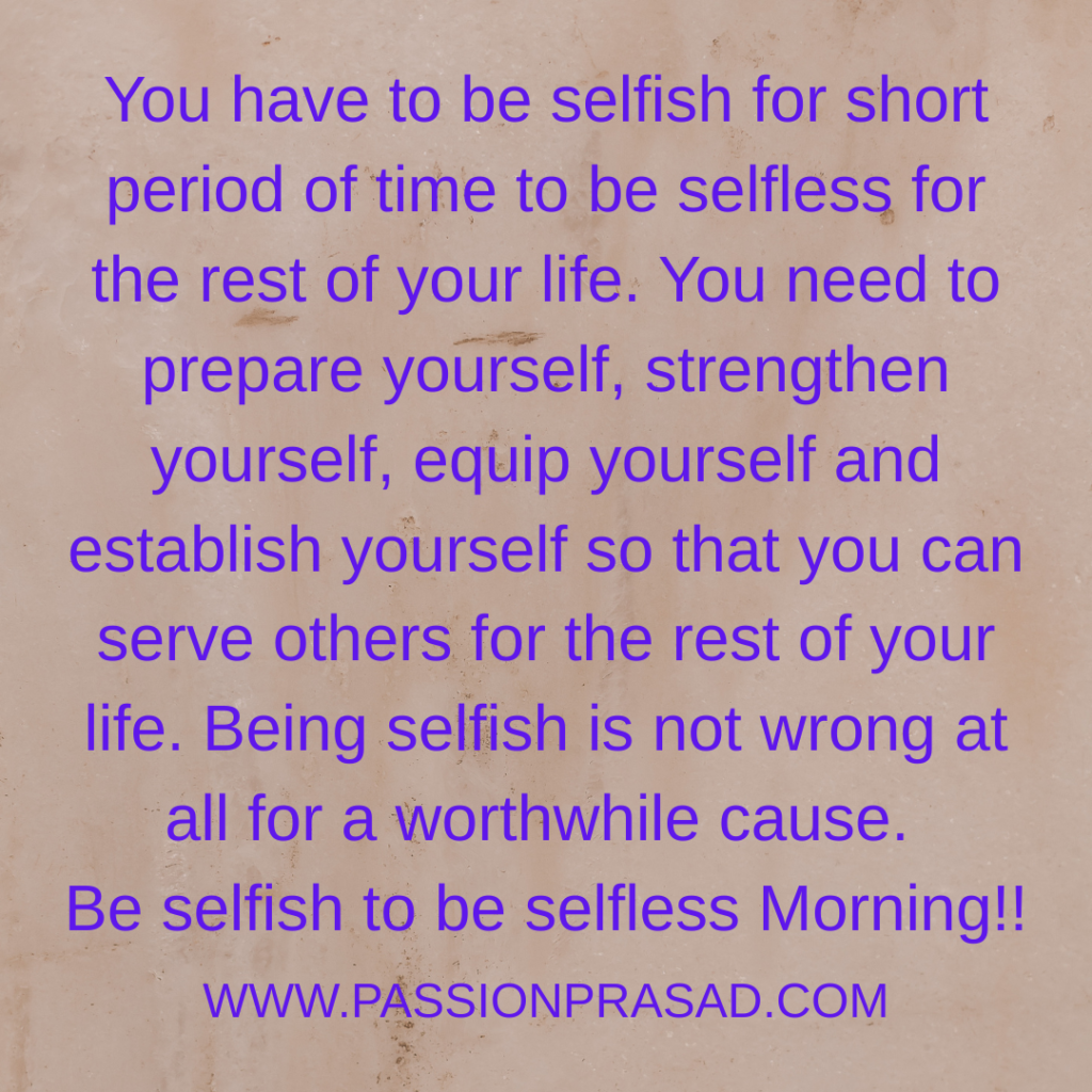 Be selfish to be selfless Morning!!